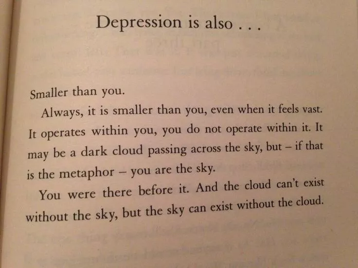 Many depressed people don’t look depressed. The emptiness, the fog is an experience. I have pictures of myself where I laugh and joke, and clown about… and I know I was depressed at the time.