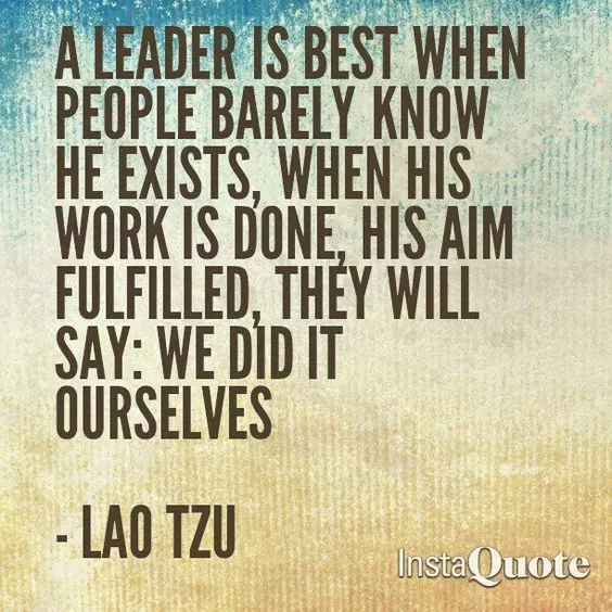 My slogan for “leadership” is from the Lao Tzu: go to the people. Find out what they know. Find out what they have. Teach them. When they are done, they will say: we did it ourselves.