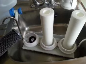 Filters are factory made, and are made with chemicals… so they may add chemicals to your filtered water rendering it not energizable. I have found only one company’s filters that both filter and are not leaking too much chemicals into the filtered water… DuPont’s whole house filters.
