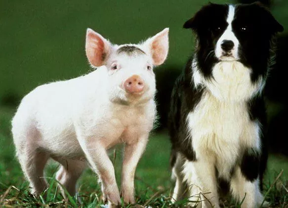 An animated movie I really liked about a pig that imprinted on a sheep dog, the movie: Babe. Watch it