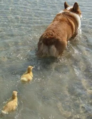 …the baby animal imprints on a mother figure, and follows it around, learns how to be. I’ve seen a youtube video about an orphaned calf who imprinted on the dog that nursed her/him, and now behaves like a dog.