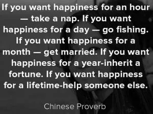 - If you want happiness for a lifetime: help someone else.